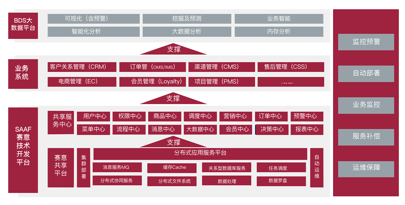 治理、组织管理、智能分析五位一体,将数据以服务方式提供给前台应用,以提升业务运行效率、持续促进业务创新为目标,以共享服务的方式,构建企业中台输出的全生态,全面助力家电行业企业数字转型升级。