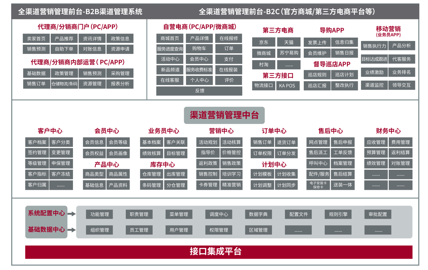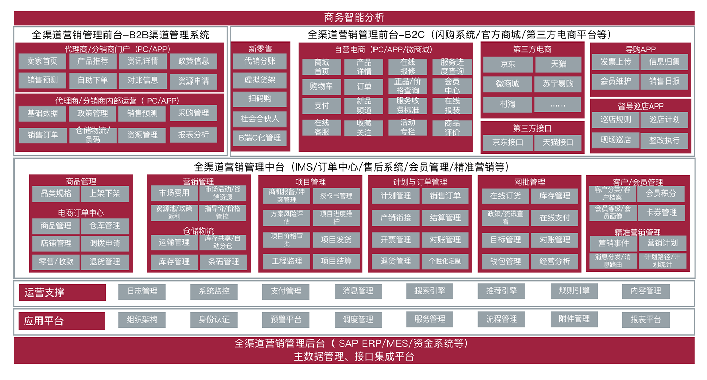全面实现订单、商品、库存、会员、促销的深度经营,帮助家电企业利用一个管理中心,处理、管控和分派来自所有渠道客户触点的订单,简化全渠道的运营管理,为品牌商、零售商或渠道商提供全渠道营销生态圈的IT支持,覆盖其内部多种系统的核心功能,帮助企业在全渠道场景下提升竞争力。